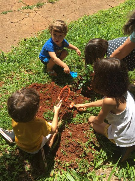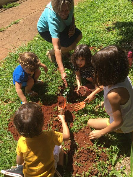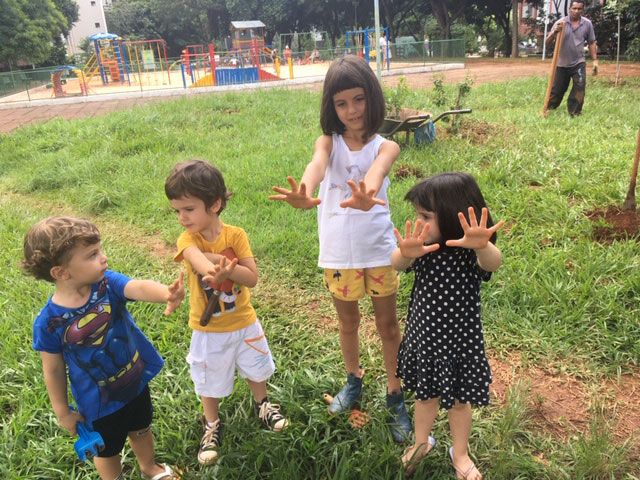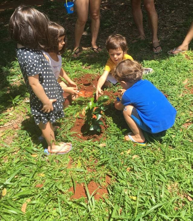 Plantio de mudas de pitanga, feito por crianças da SQN 115, em fevereiro de 2020.