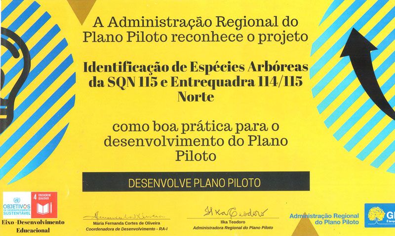 A nossa quadra, assim como muitas outras quadras e áreas verdes de Brasília, possui uma Flora que encanta os moradores e visitantes. Para estimular sua conservação e atender a curiosidade da população de conhecer melhor essa vegetação e tornar esse paisagismo um Jardim Etnobotânico realizamos, com o auxílio de especialistas botânicos, a identificação das espécies arbóreas da SQN 115 e entre quadra 114/115 onde se inclui a área do Posto de Saúde.
